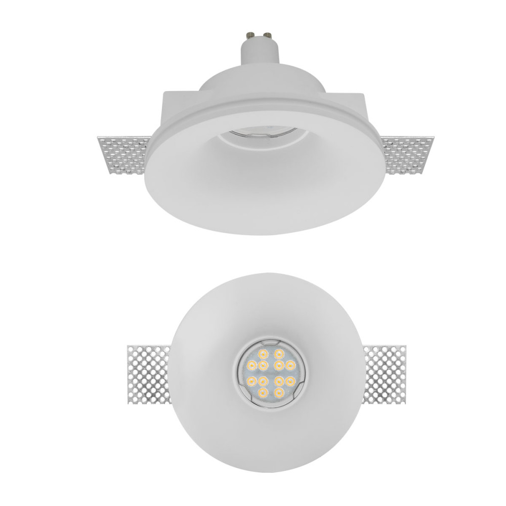 Süllyesztett kerek vagy négyzet alakú spot, gipszkarton mennyezetbe történő beépítéshez. Gipsz lámpatest, perforált alumínium rögzítő elemekkel, krómozott rugalmas acél gyűrűvel az izzó rögzítéséhez, GU10 foglalat. PAR16 típus, ami GU10 foglalattal vagy XCOMBO CM12 LED modullal használható. Az izzót és a led modult nem tartalmazza.